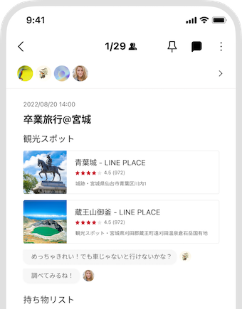 スマートフォンで撮影した写真や動画をLINEで管理することができます。保存した写真や動画は自動で整理され、簡単に友だちに共有もできます。